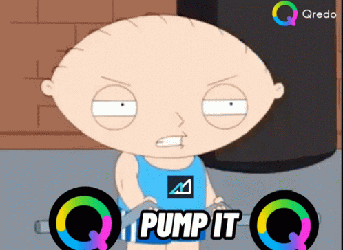 Stewie Griffin from Family Guy encourages 'Pump It' for AscendEX and Qredo.