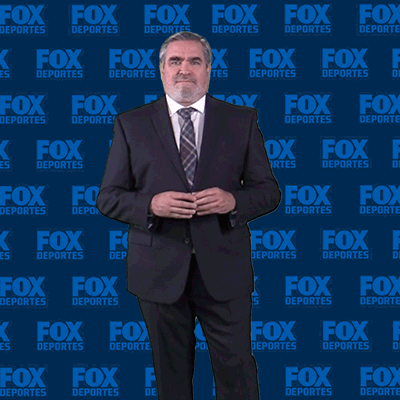 Jorge Murrieta, host of Punto Final, stands in a suit against a FOX Deportes background, deep in thought.