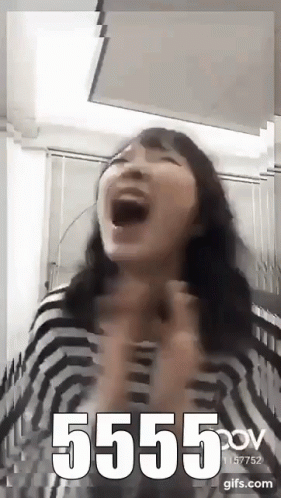 Pupebnk48 reacts with an exaggerated scream and clapping hands, with the number 5555 overlaid, signifying laughter.