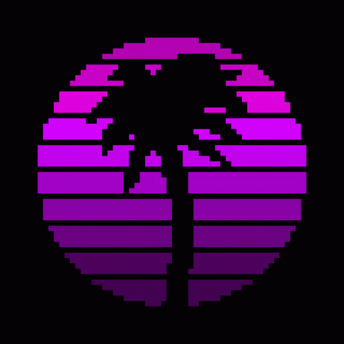 Animated pixel art illustration of a purple palm tree within a circle, featuring a ripple effect.