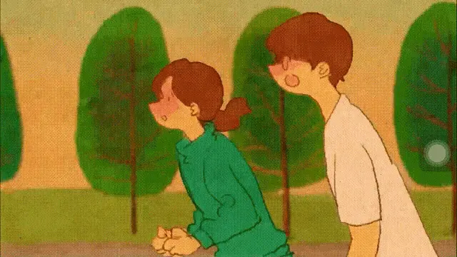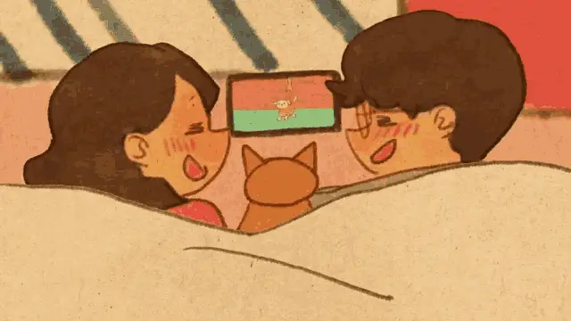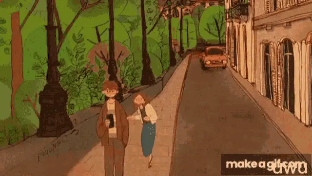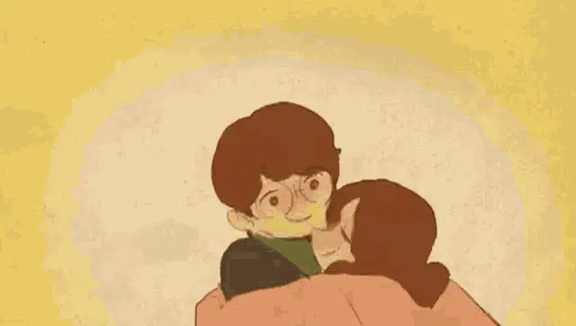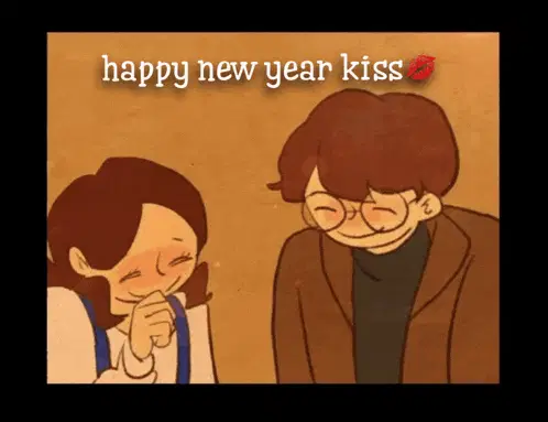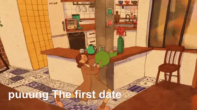 An adorable animated couple, created by Puuung, shares a sweet and tender kiss, showcasing their affection.