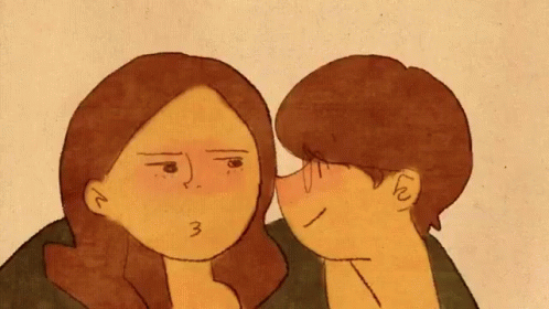 Puuung's charming animation depicts a sweet kiss on the cheek between a loving couple.