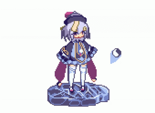 Qiqi Jiangshi, the Genshin Impact character, in a pixel art animation, showcasing her ice ability.