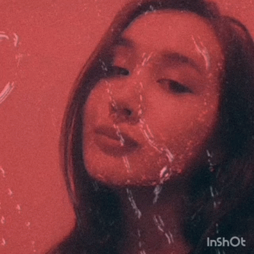 Close-up of a woman's face with a strong red filter, creating an aesthetic and moody portrait.