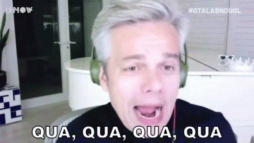 Otaviano Costa makes a funny face and says 'Qua Qua Qua' while wearing headphones, joking around.