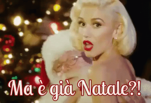 Gwen Stefani reacts with surprise, exclaiming 'But it's already Christmas?!' in a festive setting.