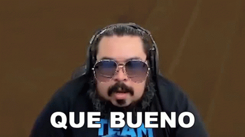 Agbin3r, wearing sunglasses and headphones, says 'Que Bueno' with a direct gaze.