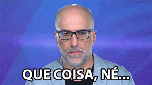 A man from Porta dos Fundos with glasses and a beard says 'Que Coisa, Né...' against a blue background.