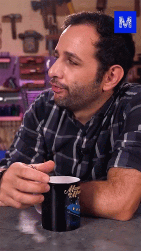 Ibere Thenorio reacts with a questioning look, holding a mug, as the phrase 'Que foi dessa vez?' appears.