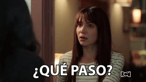 A woman in a striped shirt asks "¿Qué pasó?" in a scene from the Colombian series Pa Quererte.
