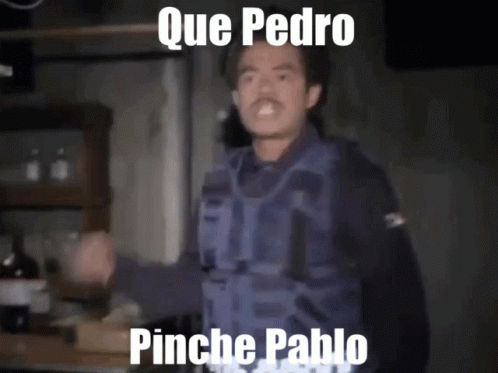 Man in a vest shouts 'Que Pedro Pinche Pablo' in an agitated manner.