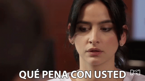 Maria Clara Gonzalez, portrayed by Diana Hoyos, expresses 'Que Pena Con Usted' with a serious look.