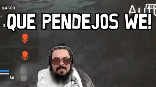Agbin3r, a bearded man in sunglasses and headphones, reacts with 'Que Pendejos We!' during a video game session.
