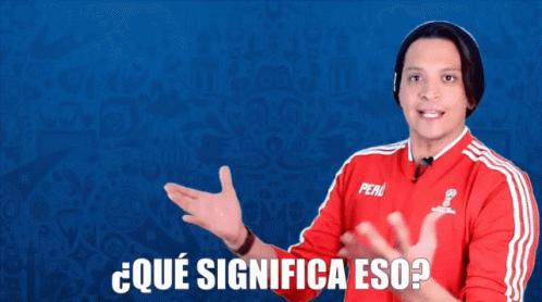 Man in a red Peru jersey asks 'What does that mean?' with a confused gesture against a blue background.