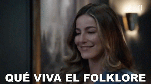 Vivian Roldan smiles as the text 'Que Viva El Folklore' (Long Live Folklore) appears, celebrating culture.