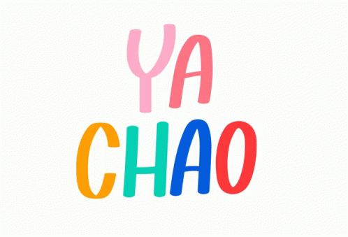 Colorful text displaying 'YA CHAO' in vibrant hues on a clean white background.