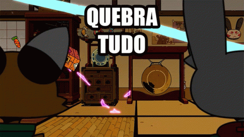 Ninjin goes on a rampage, breaking everything in sight in this chaotic cartoon scene.