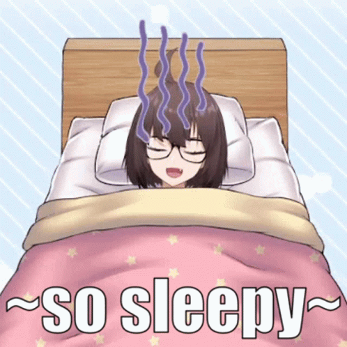 Queen Shojo V Tuber is seen lying in bed, looking very sleepy with steam rising from her head.