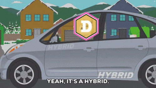 A South Park character in a hybrid car with a crypto logo, discussing not destroying the earth.