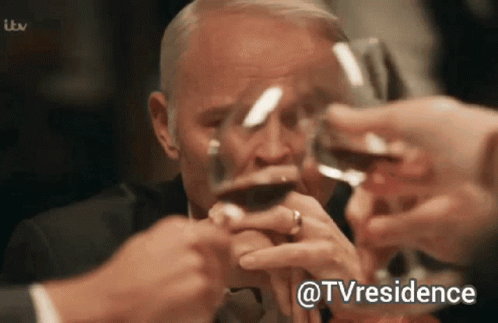 An older man looking sad during a toast at a Quiz Tvresidence event.