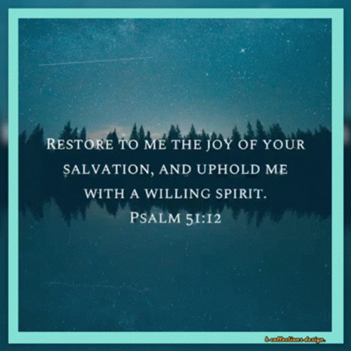 A powerful Bible verse from Psalm 51:12: 'Restore to me the joy of your salvation, and uphold me with a willing spirit.'