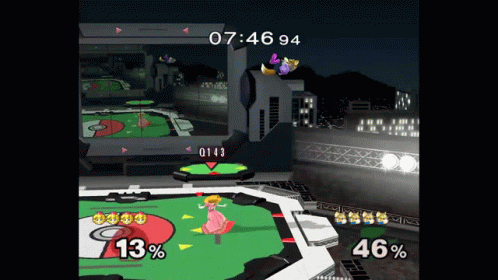 Qwertz143 plays as Princess Peach in Super Smash Bros. Melee, performing a stitch on an opponent.