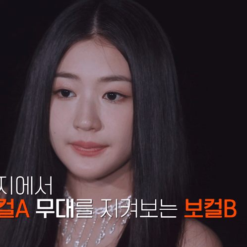 R U Next's Yewon shows a surprised reaction while watching another contestant's performance.