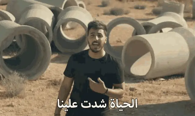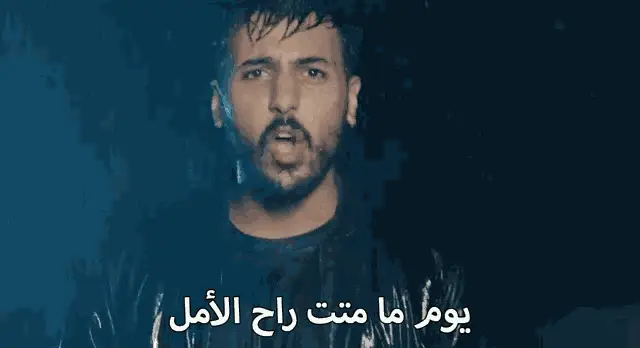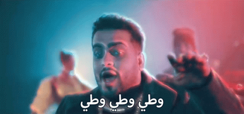 Mohamad Gowani performing rap with Arabic captions 'وطي وطي وطي' (Lower, lower, lower) in a vibrant music video.