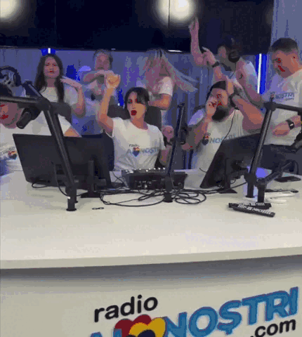 Cristina Platon and the Radio Ai Nostri team celebrate with an energetic dance party in the studio.
