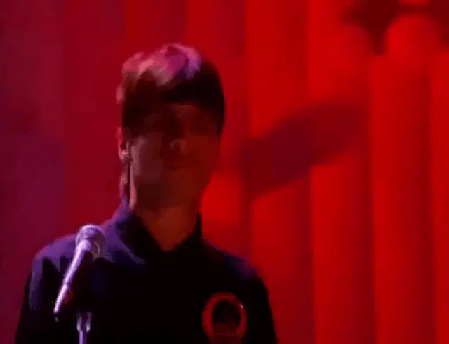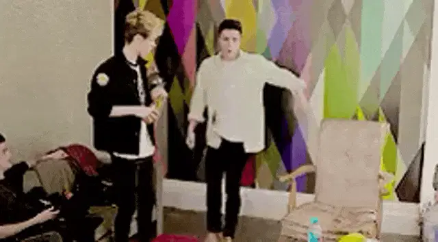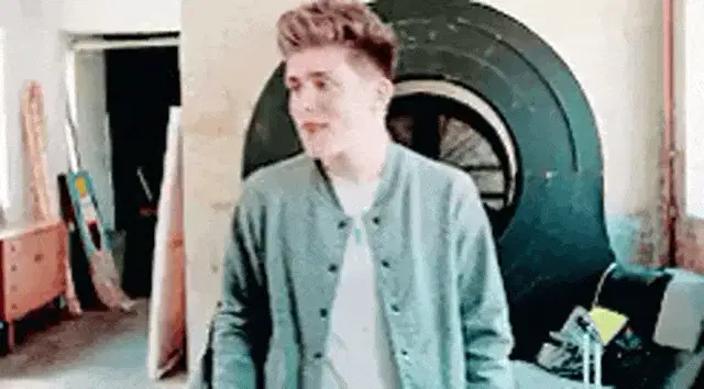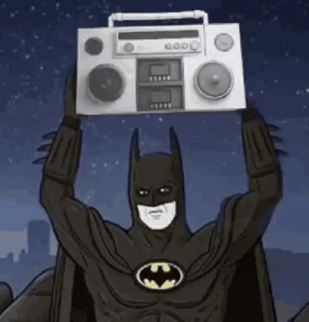 A man sits on stairs, adjusting a vintage boombox radio stereo.