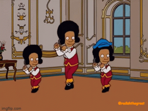 Radishthegreat's cartoon parody of the Jackson 5 dancing in 18th-century attire in a grand room.