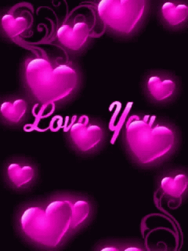 Glowing pink hearts float across a black background with the words "Love You" prominently displayed in the center.