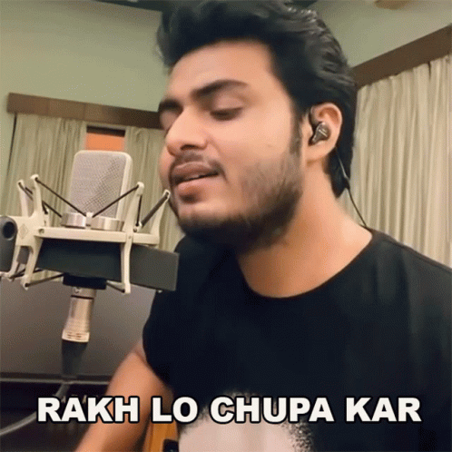 Raj Barman performs 'Rakh Lo Chupa Kar' into a microphone in a recording studio.