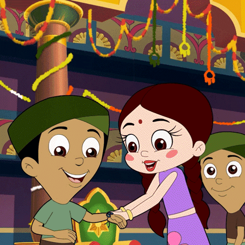 Chutki ties a Rakhi on Dholu's wrist while Bholu watches, celebrating Raksha Bandhan.