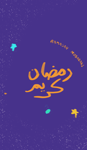 Animated greeting for Ramadan featuring 'Ramadan Mubarak' and 'Ramadan Kareem' calligraphy with a crescent moon.