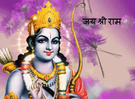 A vibrant depiction of Lord Ram with his bow and arrow, featuring the greeting "Jai Shri Ram."