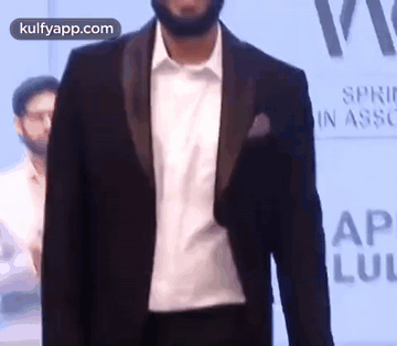 Kalidas Jayaram walks the ramp in a stylish tuxedo at Lulu Fashion Week, showcasing his confident style.