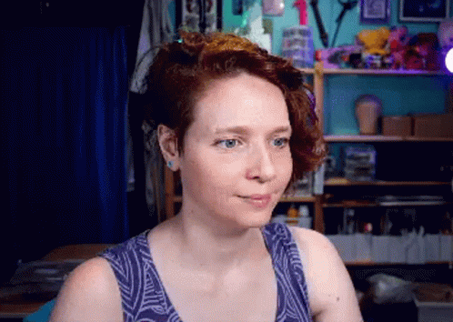 A red-haired woman with blue eyes excitedly exclaims 'I made it!' with a wide smile.