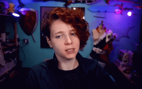 A woman with vibrant red hair enthusiastically exclaims 'YES!' with a powerful double fist pump.
