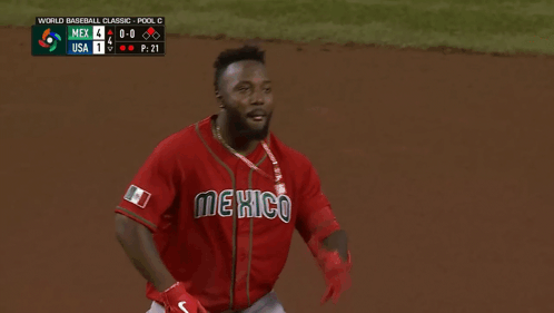Randy Arozarena of Team Mexico strikes his signature arms-crossed pose during the World Baseball Classic.