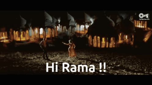Urmila Matondkar from Rangeela, wearing a bindi and saying 'Hi Rama!' dramatically.