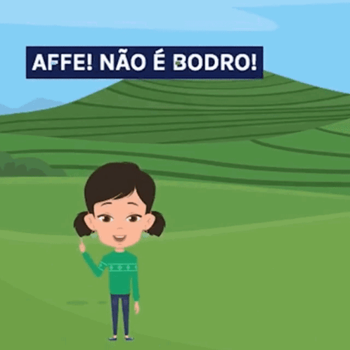 Raquelzinha Xililim from Turminha Do Açafrão Bondoso stands in a green field, with a sign displaying 'AFFE! NÃO É BODRO! É DOBRO!'.