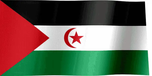 Various depictions of the Western Sahara flag, including maps and stylized versions.