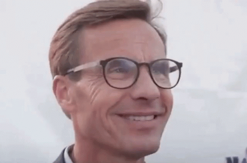 Ulf Kristersson, leader of Moderaterna, smiles while wearing glasses.