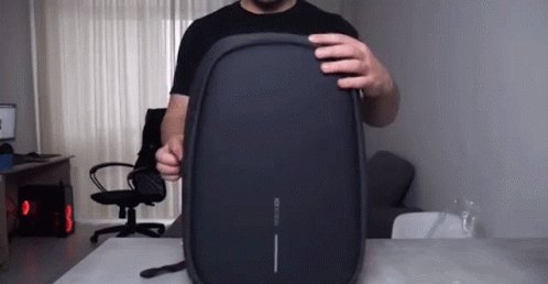 Max unboxes and presents a black XD Design backpack, showcasing its features and design.