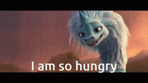 Raya's Sisu dragon looks hungry, with the caption 'I am so hungry' displayed.
