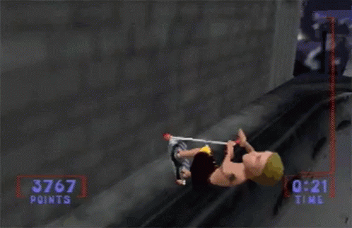 A video game character performs a 180 tabletop trick on a Razor Scooter, earning 3767 points.