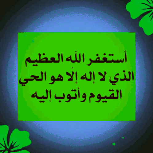 A vibrant green square displays the Arabic phrase 'I seek forgiveness from Allah', surrounded by decorative green elements.