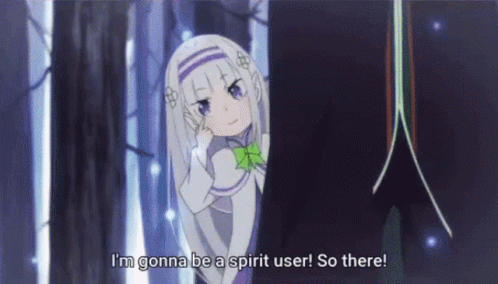 Emilia from Re:Zero Kara Hajimeru Isekai Seikatsu declares her ambition to become a spirit user.