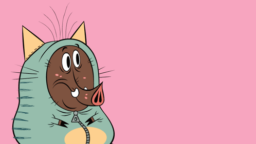 A cartoon pig-like character, possibly Sam or ZipZip, looking nervous as the text 'ARE YOU SURE?' appears.